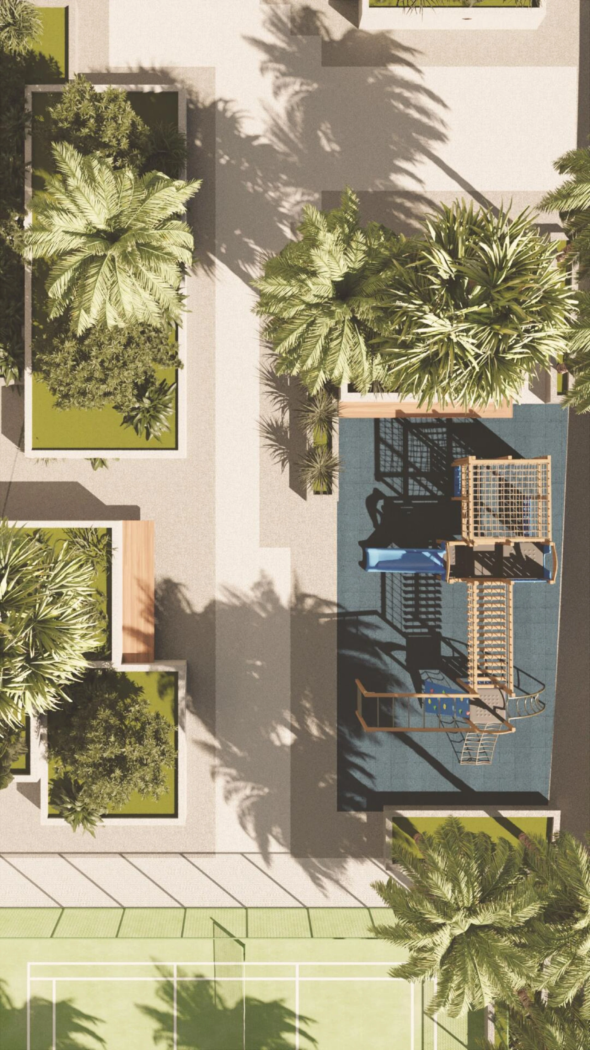 Choć dominuje tu zabudowa mieszkaniowa, wiele obszarów przeznaczonych jest na działalność komercyjną. Znajdziemy tu apartamenty, wille, biura, sklepy i hotele. Zabudowa to głównie średniowysokie budynki mieszkalne.