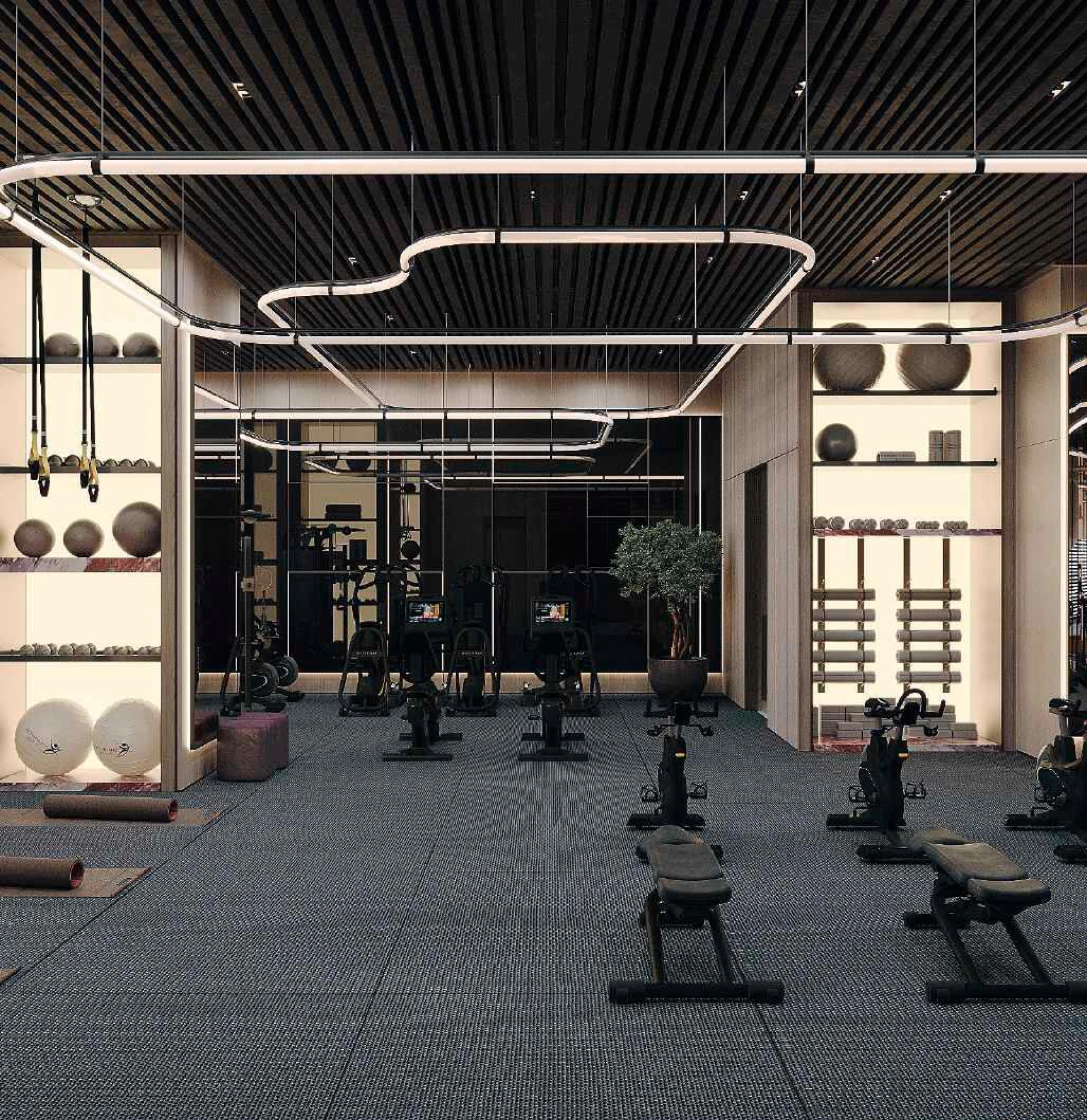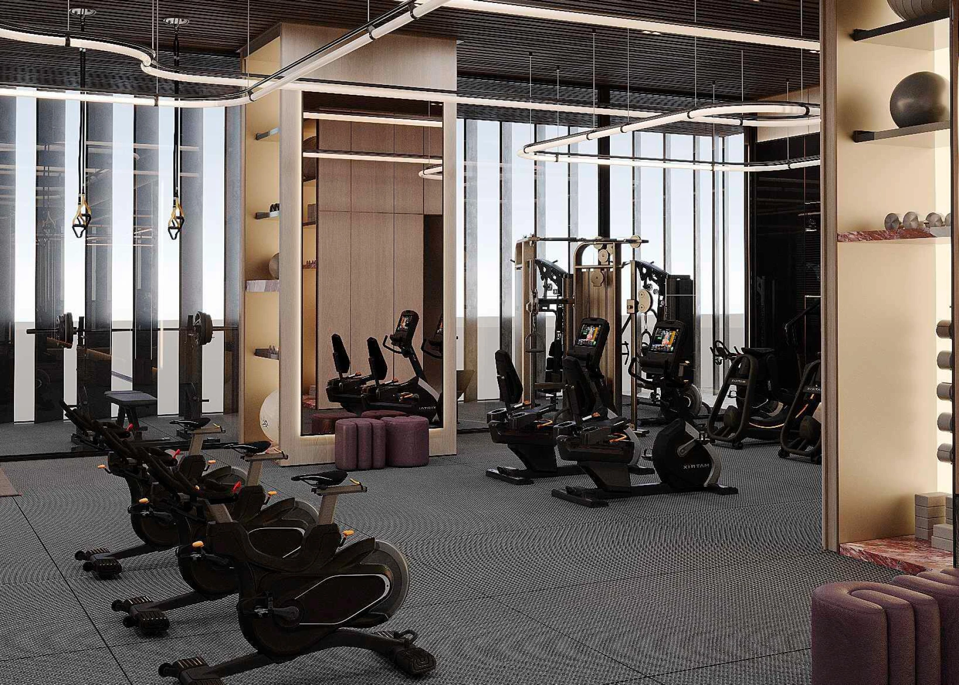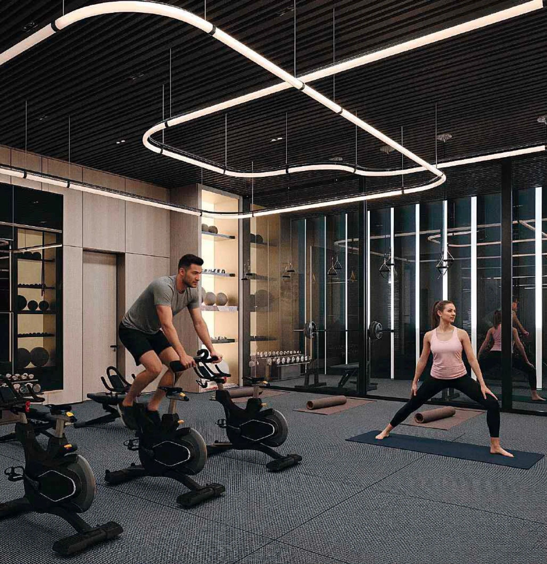 Wnętrze zachwyca światem nowoczesnych udogodnień, zaprojektowanych z myślą o współczesnym stylu życia. Na pierwszym piętrze czeka na Ciebie basen w stylu resortowym, leniwa rzeka idealna na spokojne popołudnia, w pełni wyposażona siłownia oraz kolorowa strefa wodna dla dzieci — wszystko stworzone z myślą o rodzinach i osobach aktywnych.