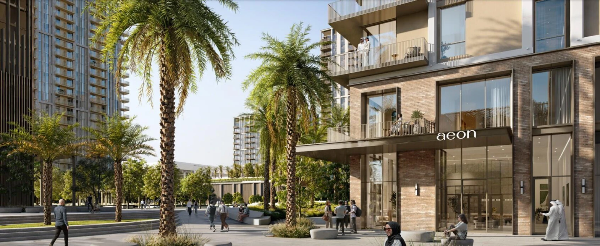 AEON wyłania się jako centralny punkt dynamicznej nowej społeczności, w której nowoczesny styl życia łączy się z historyczną duszą Dubaju. Przechadzaj się przyjaznymi dla pieszych promenadami lub odpoczywaj w zielonych przestrzeniach otwartych – wszystko to tworzy tętniącą życiem dzielnicę bogatą w kulturę i udogodnienia.