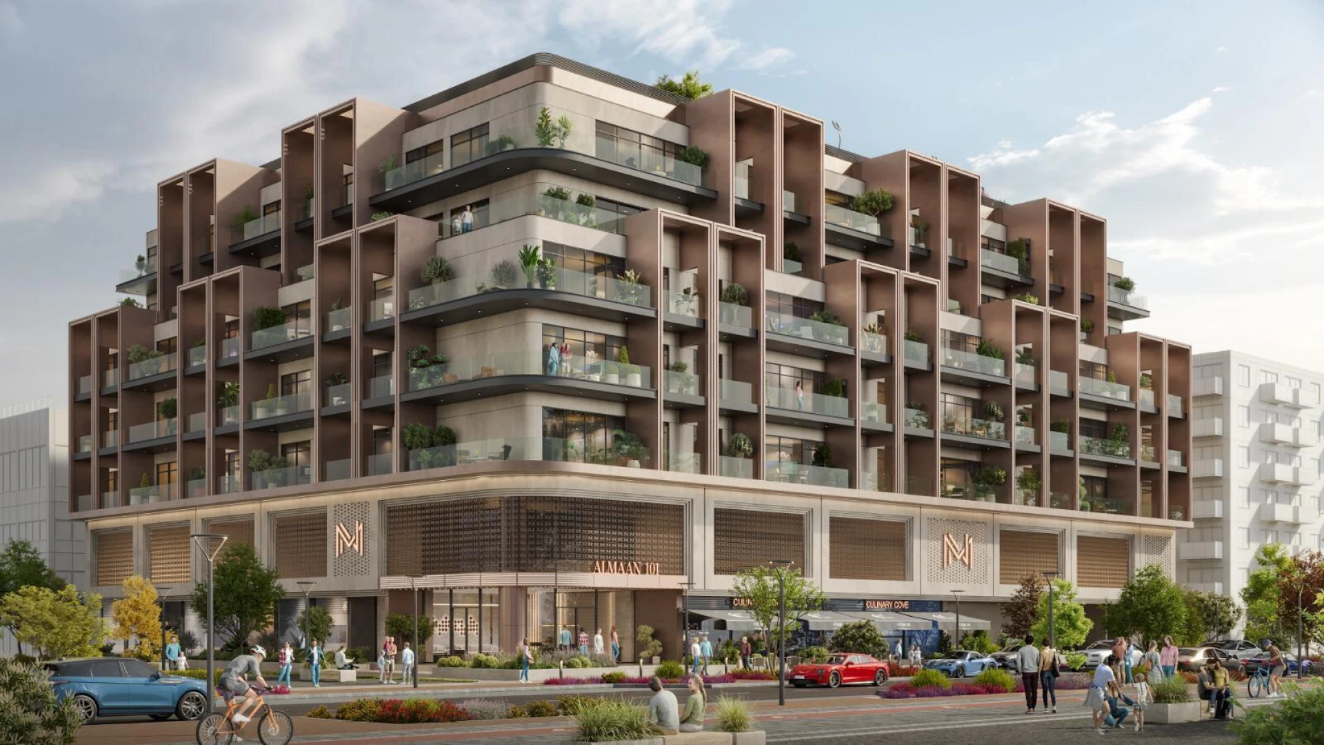 Almaan 101 redefiniuje miejską elegancję w tętniącym życiem sercu Jumeirah Village Circle. Stworzony przez MN Vision Real Estate, ten ośmiopiętrowy mieszkalny azyl jest latarnią wyrafinowanej elegancji, doskonale łączącą bujne otoczenie z podniesioną doskonałością architektoniczną. Każdy zakątek, od odważnej fasady po artystyczne wnętrza, został starannie zaprojektowany, oferując mieszkańcom świat, w którym styl i komfort naturalnie się przenikają.