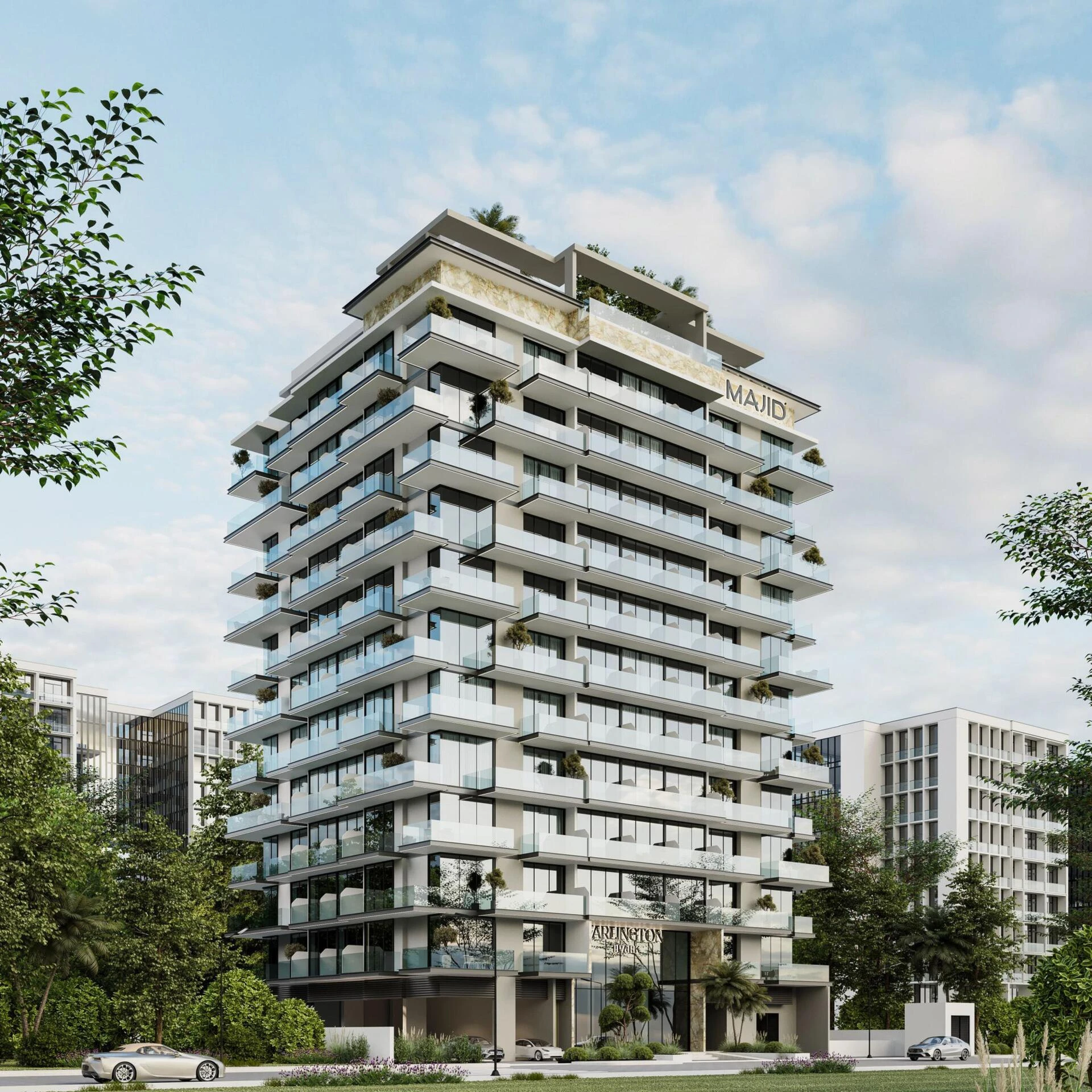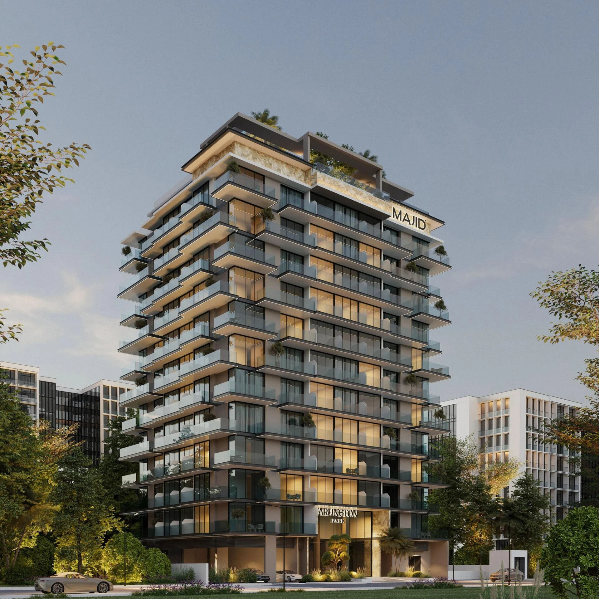 Arlington Park to charakterystyczna 12-piętrowa wieża mieszkalna w prestiżowym kompleksie DubaiLand Residence, położona w dynamicznej dzielnicy Wadi Al Safa 5. Zaprojektowany przez Majid Developments, projekt łączy w sobie nowoczesną elegancję i codzienny komfort w jednej z najszybciej rozwijających się dzielnic Dubaju.
