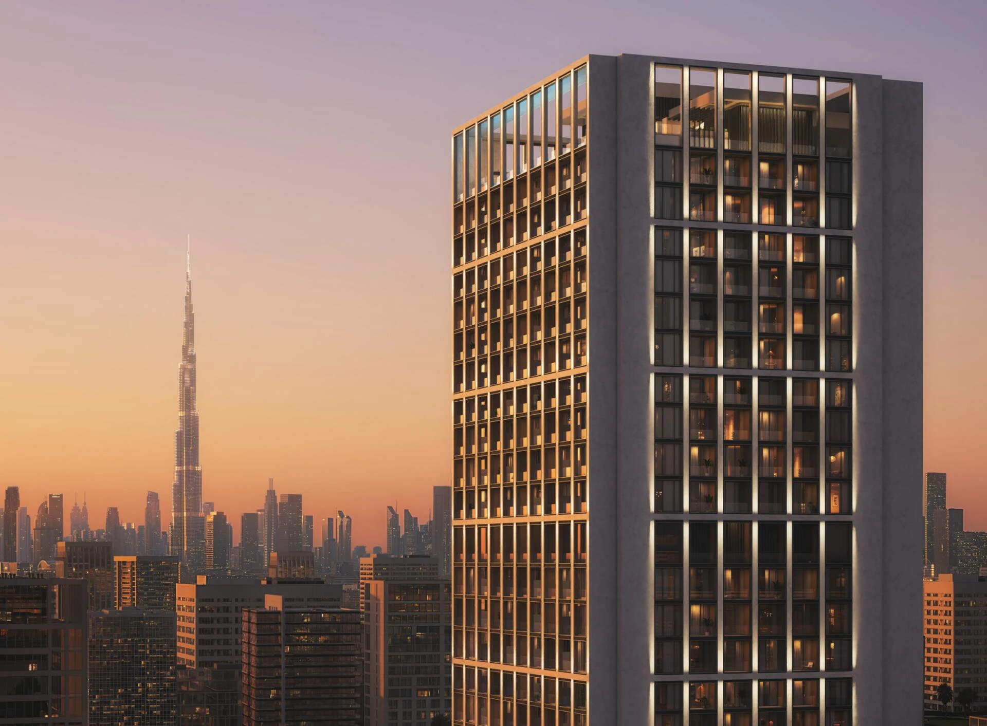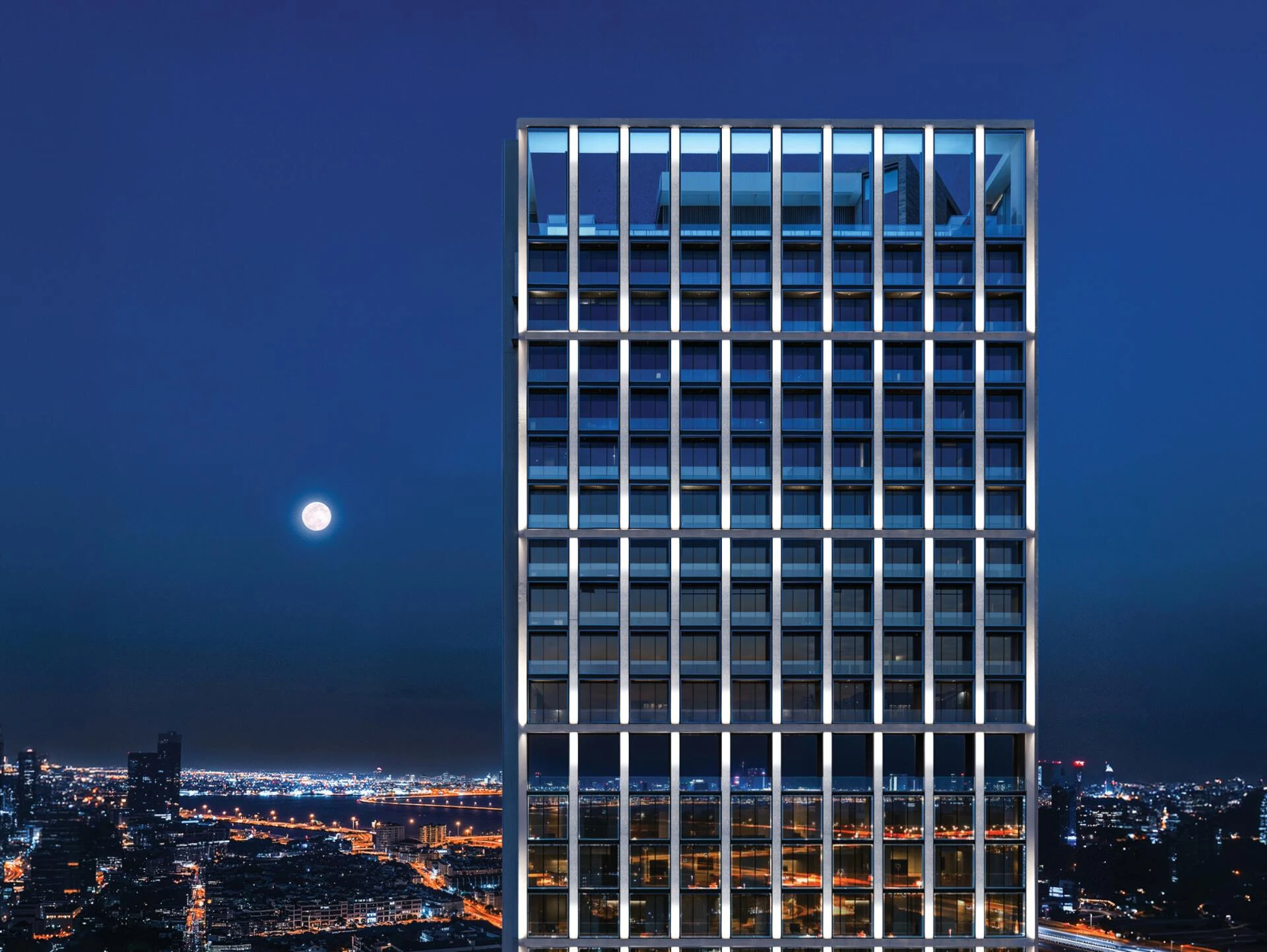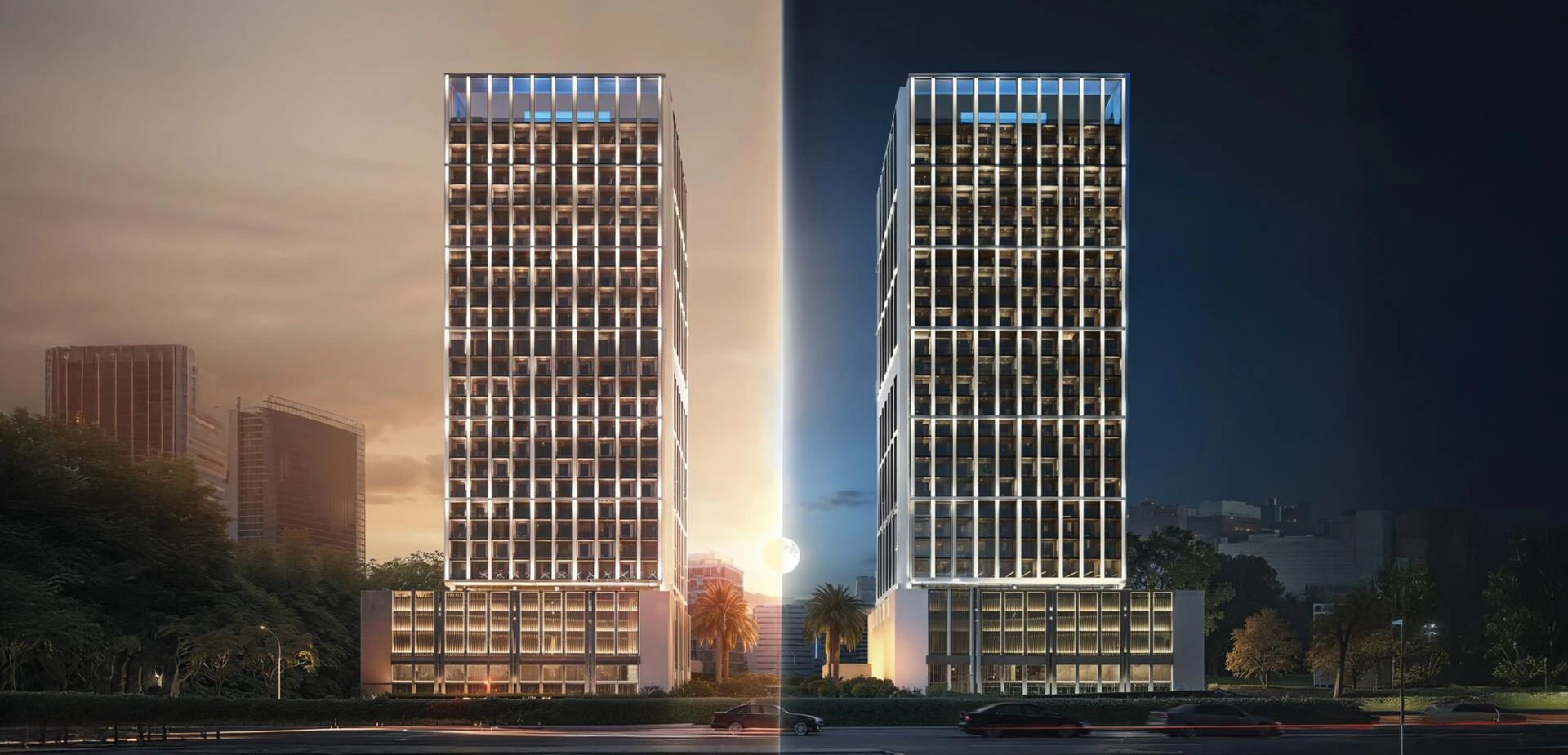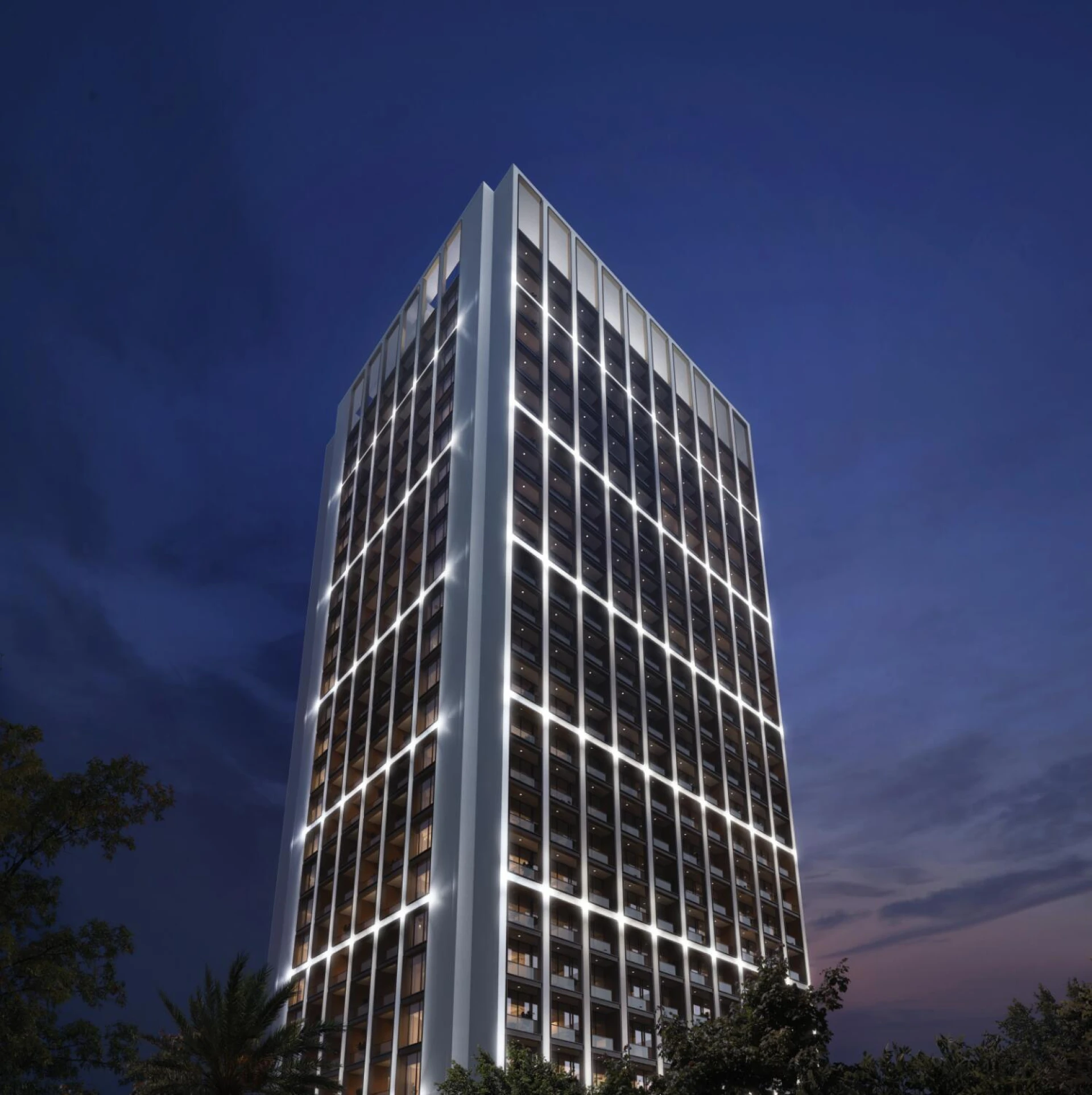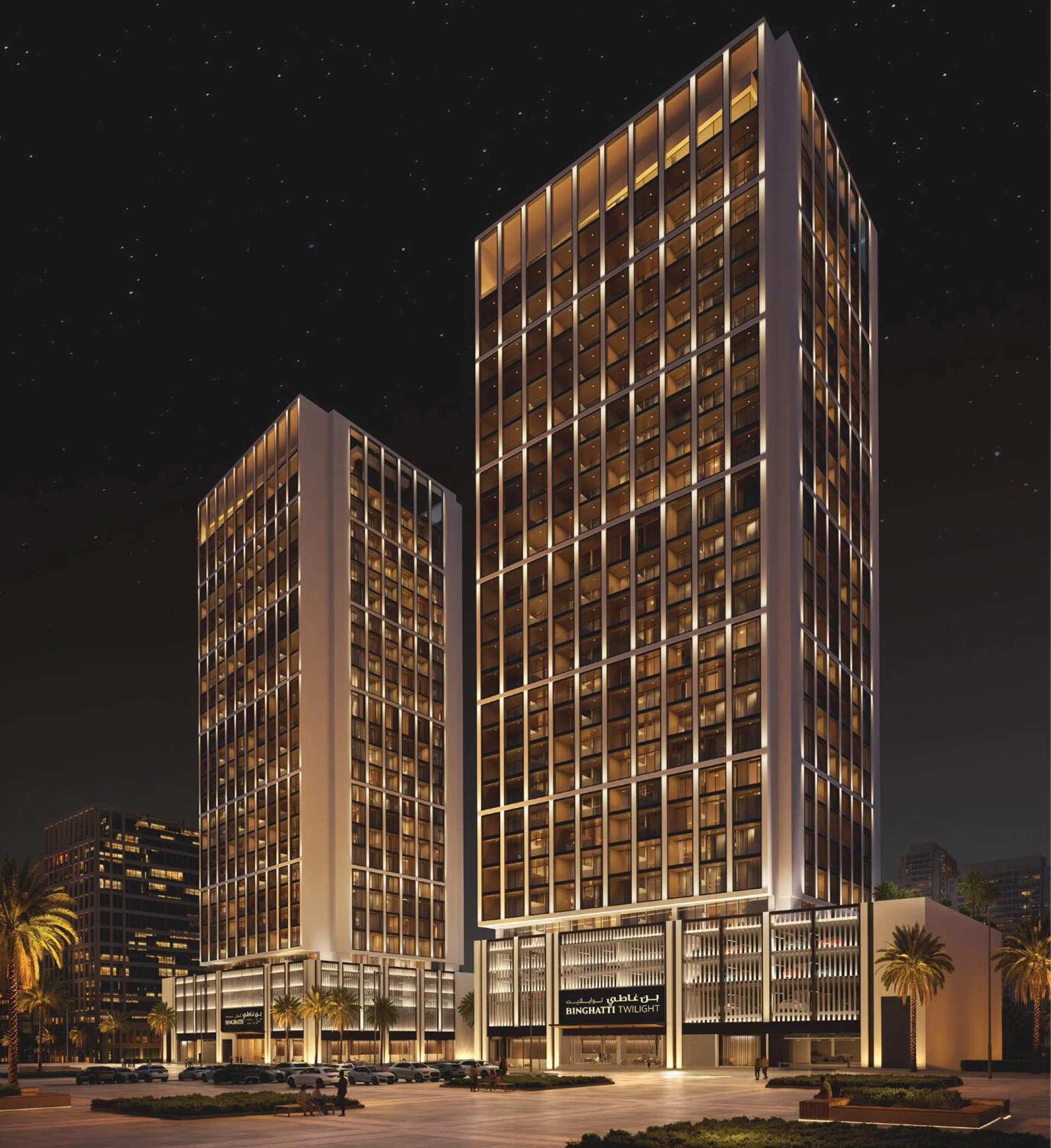 Binghatti Moonlight wznosi się nad Al Jaddaf jako uderzająca wieżowiec, zdefiniowana przez swoją kryształową szklaną fasadę i charakterystyczną otwartą koronę. Jej odważne linie architektoniczne wprowadzają połączenie wyrafinowania i nowoczesnej przejrzystości, natychmiast czyniąc ją rozpoznawalnym punktem orientacyjnym w jednym z szybko rozwijających się dzielnic Dubaju.