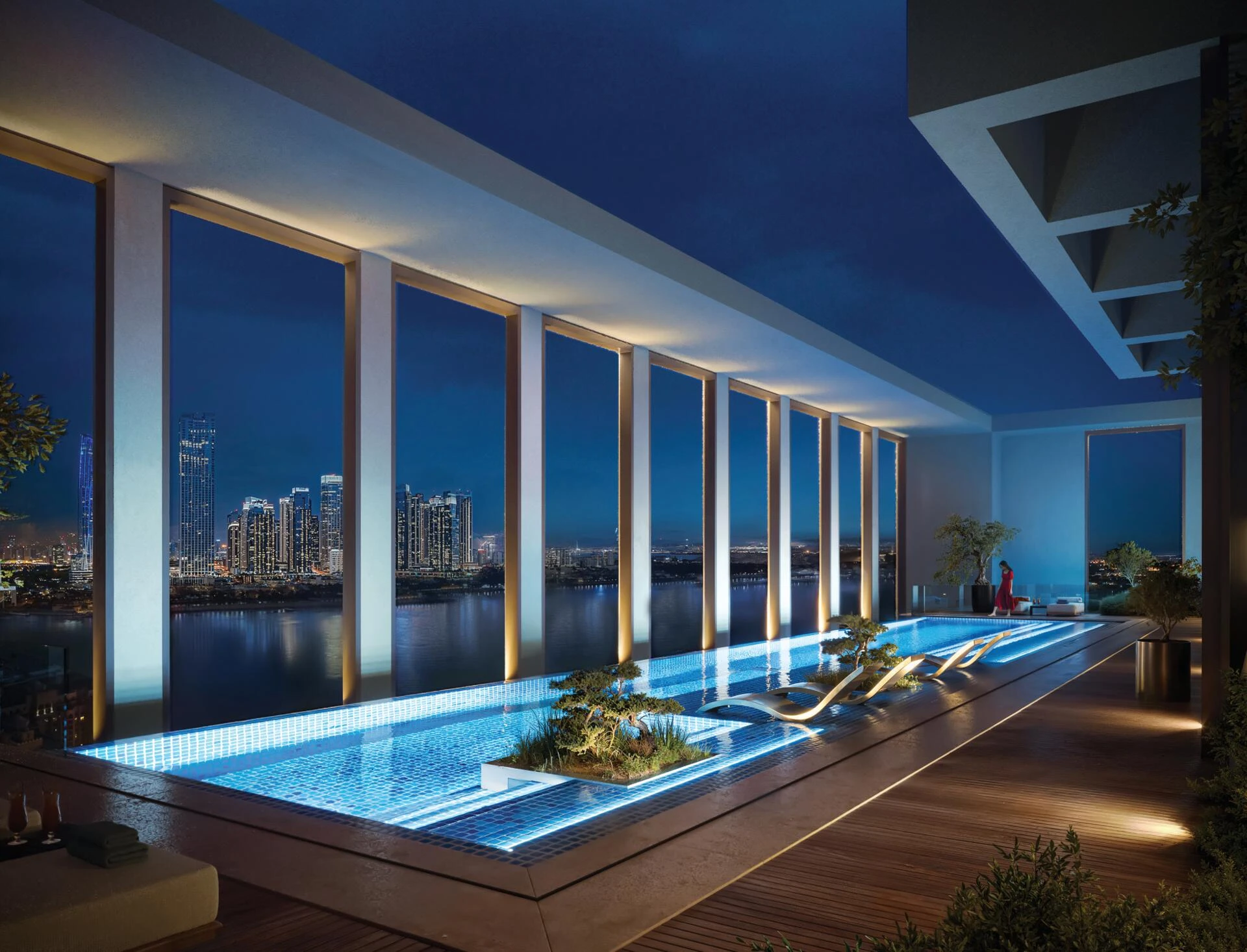 Wieżowiec rozpieszcza mieszkańców starannie dobranym zestawem udogodnień, w tym oszałamiającym basenem bez krawędzi na dachu, nowoczesnymi siłowniami dla mężczyzn i kobiet, przestrzeniami przyjaznymi dla zwierząt oraz przytulnymi strefami społecznymi. Premium obiekty handlowe i biurowe są płynnie wkomponowane, tworząc tętniącą życiem, samowystarczalną społeczność.