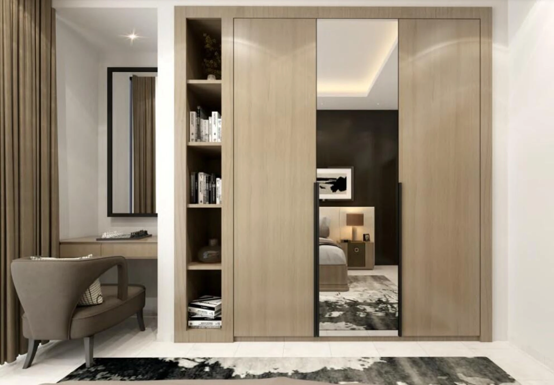 Wnętrze, zgodnie z filozofią projektowania, koncentruje się na elegancji i komforcie. Każda rezydencja ucieleśnia nowoczesną architekturę i jest stworzona jako prywatne sanktuarium, oferując panoramiczne widoki na ikoniczną Palm Jumeirah oraz fascynującą panoramę miasta. Wypełnione naturalnym światłem, te mieszkania zapewniają spokojną ucieczkę od zgiełku życia miejskiego.