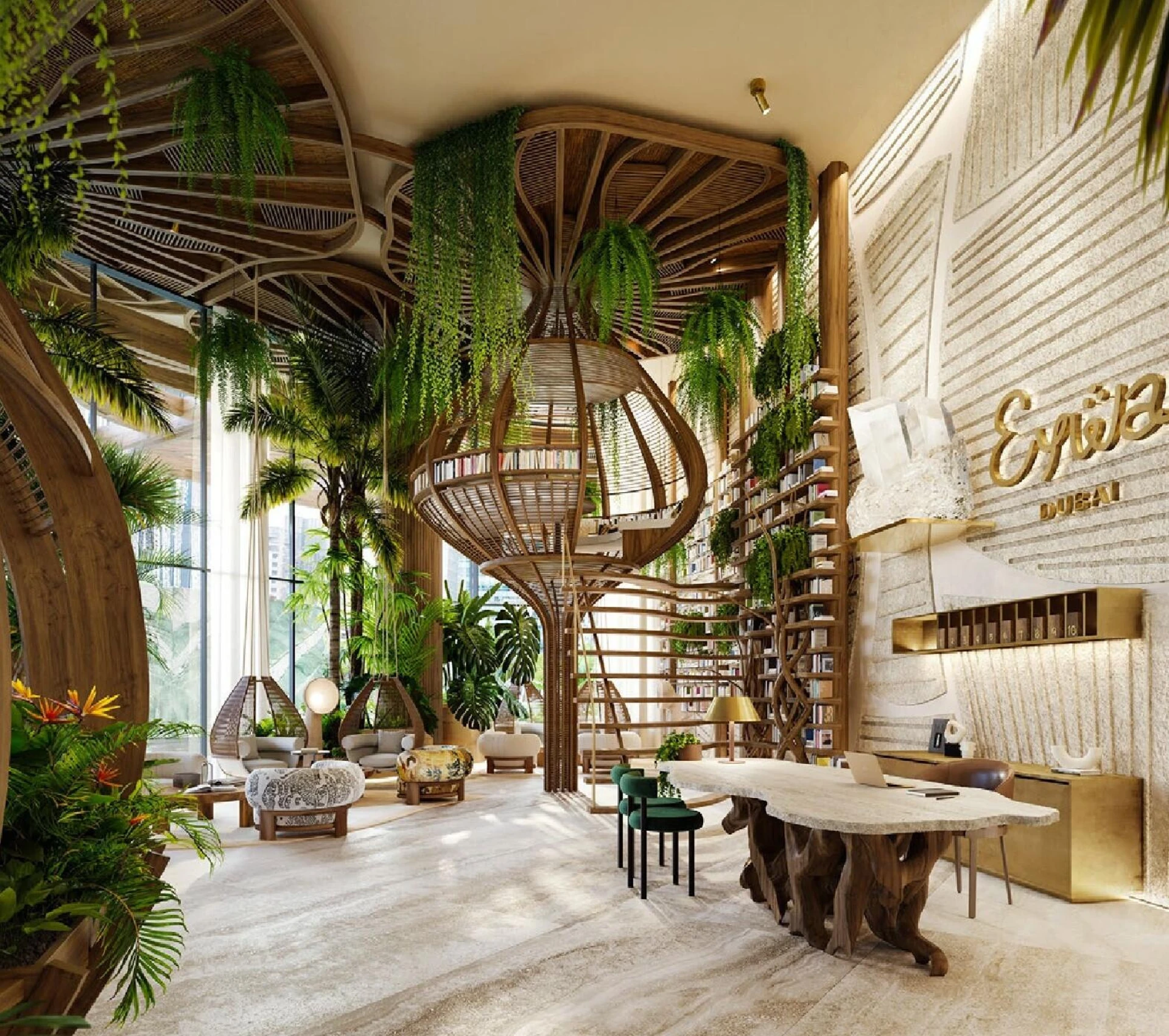 Doświadcz nowego wymiaru świadomego luksusu z EYWA, butikowym ekologicznym luksusowym osiedlem położonym nad spokojnym Kanałem Wodnym w Dubaju. Ograniczone do zaledwie 50 ekskluzywnych rezydencji i dwóch zapierających dech w piersiach penthouse'ów, projekt EYWA czerpie inspirację z Drzewa Życia, łącząc mieszkańców z harmonijnymi zasadami natury i mądrością Vastu Shastra. Architektura charakteryzuje się hipnotyzującymi baldachimami gałęzi i zaokrąglonymi kolumnami, uzupełnionymi przepływem pozytywnej energii z 162 starannie umieszczonych kryształów w całym budynku.