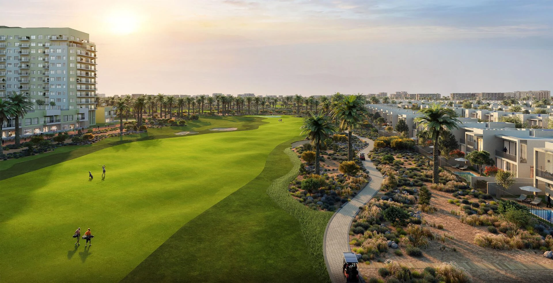Golf Dale offers an array of recreational amenities for a vibrant lifestyle. Enjoy golf on world-class fairways, energize your mornings on scenic jogging tracks, or unwind in outdoor gyms and yoga zones. With tennis and paddle courts at your doorstep, every activity is an opportunity to stay active and connected to the outdoors.