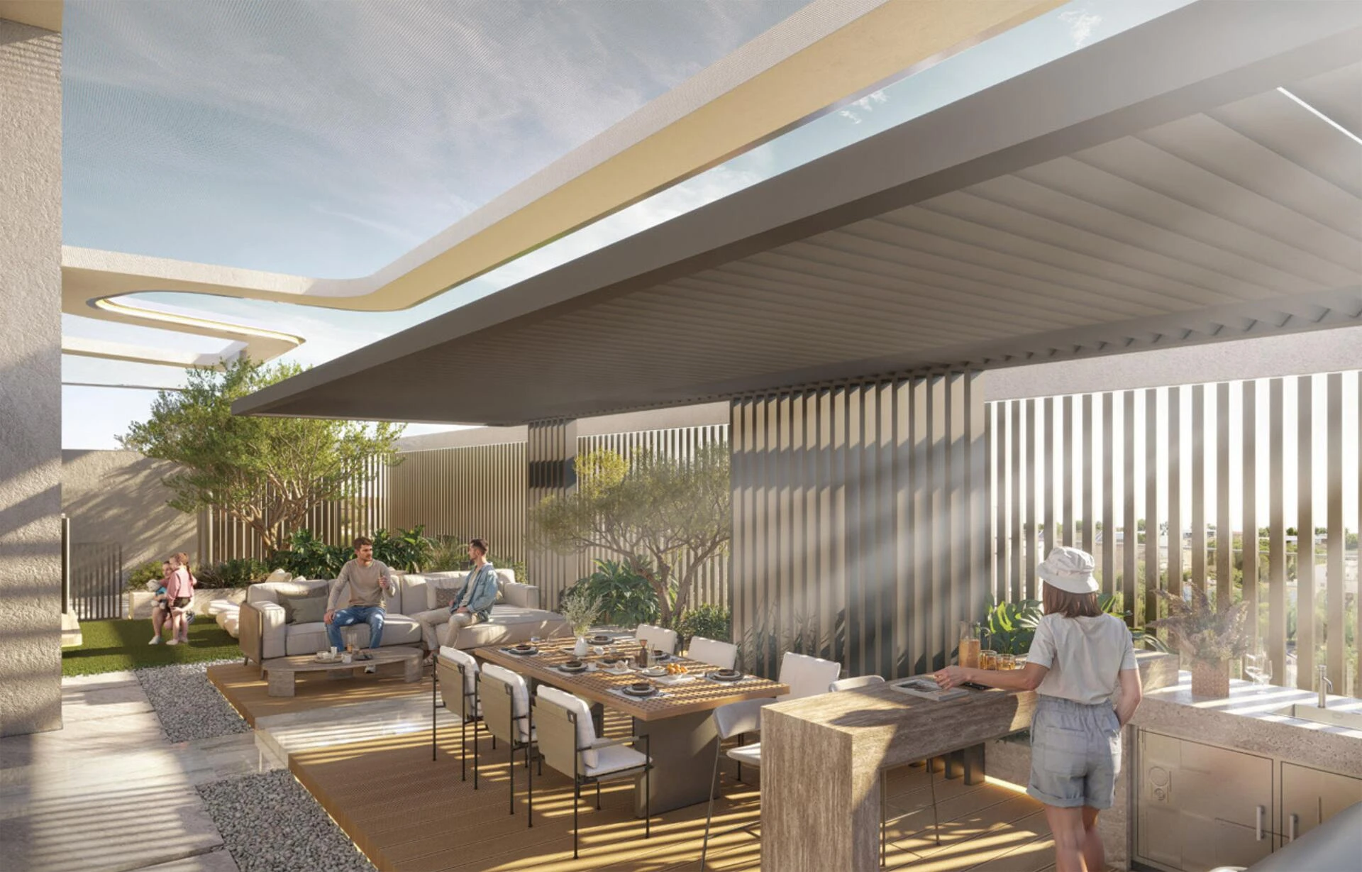 Wewnątrz mieszkańcy odkryją uspokajające naturalne tekstury połączone z intuicyjnymi funkcjami inteligentnego domu, oferującymi łatwą kontrolę nad ich otoczeniem. Każdy pokój jest zaprojektowany tak, aby był żywy i przyjazny, skąpany w świetle słonecznym i stworzony jako osobiste sanktuarium—przestrzeń, w której rozwijają się wyjątkowe chwile życia.