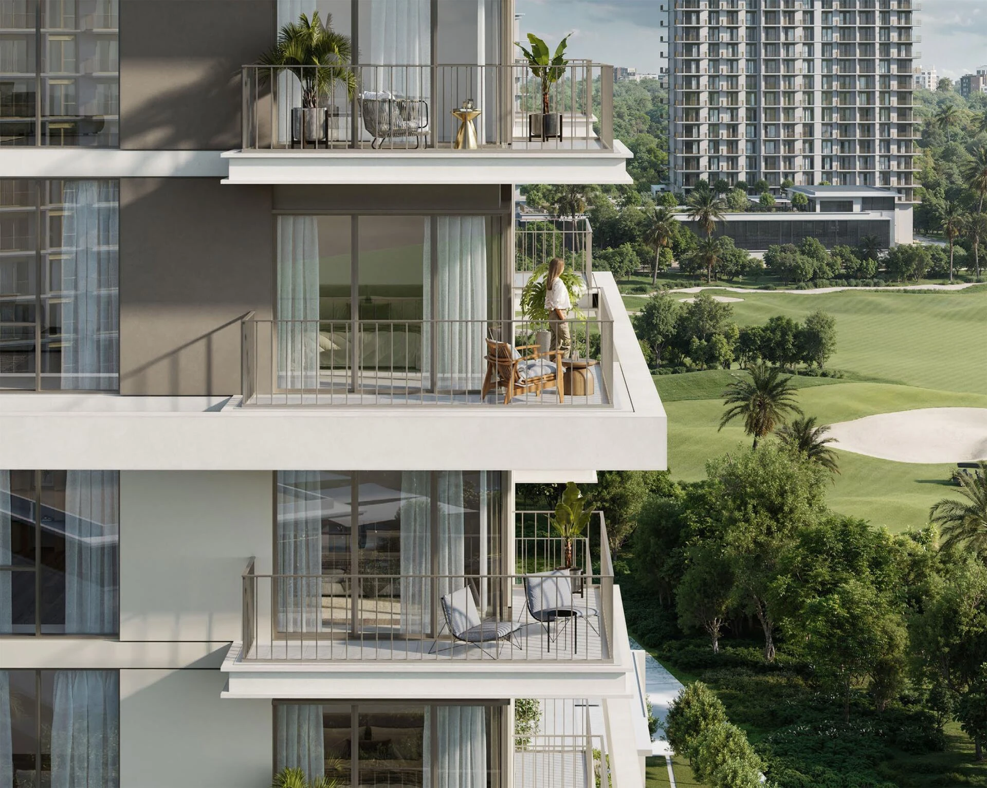 Wybierz przestronne apartamenty z 1, 2 lub 3 sypialniami albo ekskluzywne domy szeregowe z 3 sypialniami – każda opcja oferuje imponujące wnętrza i zachwycające widoki na pole golfowe Emaar South. Filozofia projektu opiera się na harmonii i spokoju, łącząc ziemiste tony, szlachetne drewniane wykończenia oraz akcenty z kamienia, dzięki czemu wnętrza sprzyjają relaksowi i nawiązaniu kontaktu z naturą.