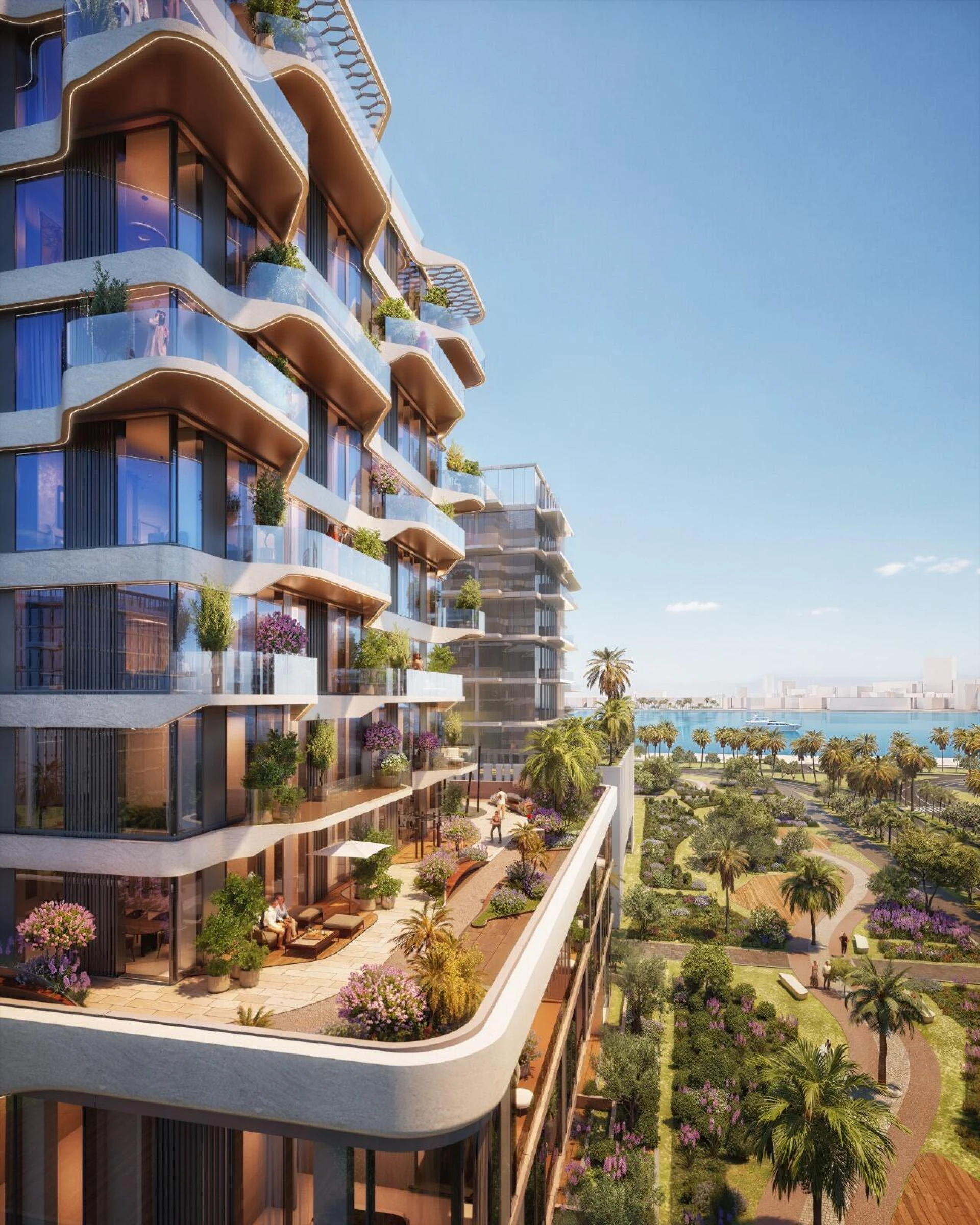 Mieszkańcy mogą korzystać z starannie dobranej gamy udogodnień, w tym spektakularnego basenu na dachu i baru, nowoczesnych siłowni wewnętrznych i zewnętrznych, stref relaksacyjnych jogi oraz bujnych ogrodów krajobrazowych. Dedykowane strefy dla dzieci oraz całodobowe usługi konsjerża zapewniają spełnienie potrzeb rodzin i profesjonalistów, sprzyjając tworzeniu tętniącej życiem, połączonej społeczności.