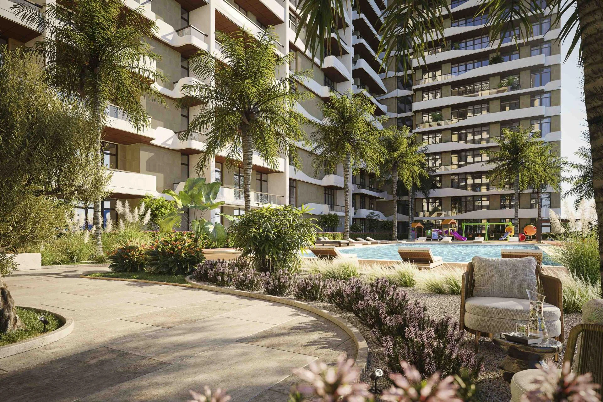 Mieszkańcy korzystają z szeregu światowej klasy udogodnień, w tym błyszczącego basenu, pięknie zagospodarowanych ogrodów oraz dedykowanych placów zabaw dla dzieci, co sprzyja życiu rodzinnemu. Każda przestrzeń w społeczności jest starannie zaprojektowana, aby zwiększyć relaks i wspierać żywą atmosferę wspólnoty.