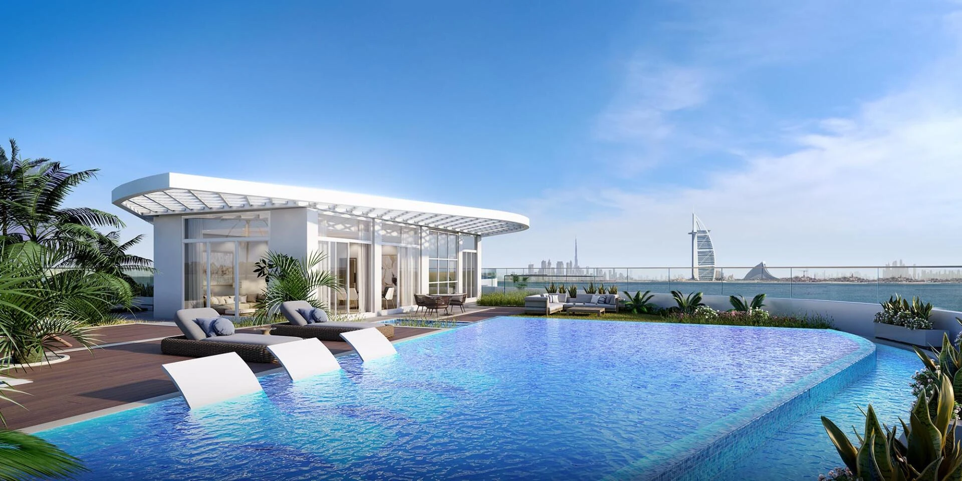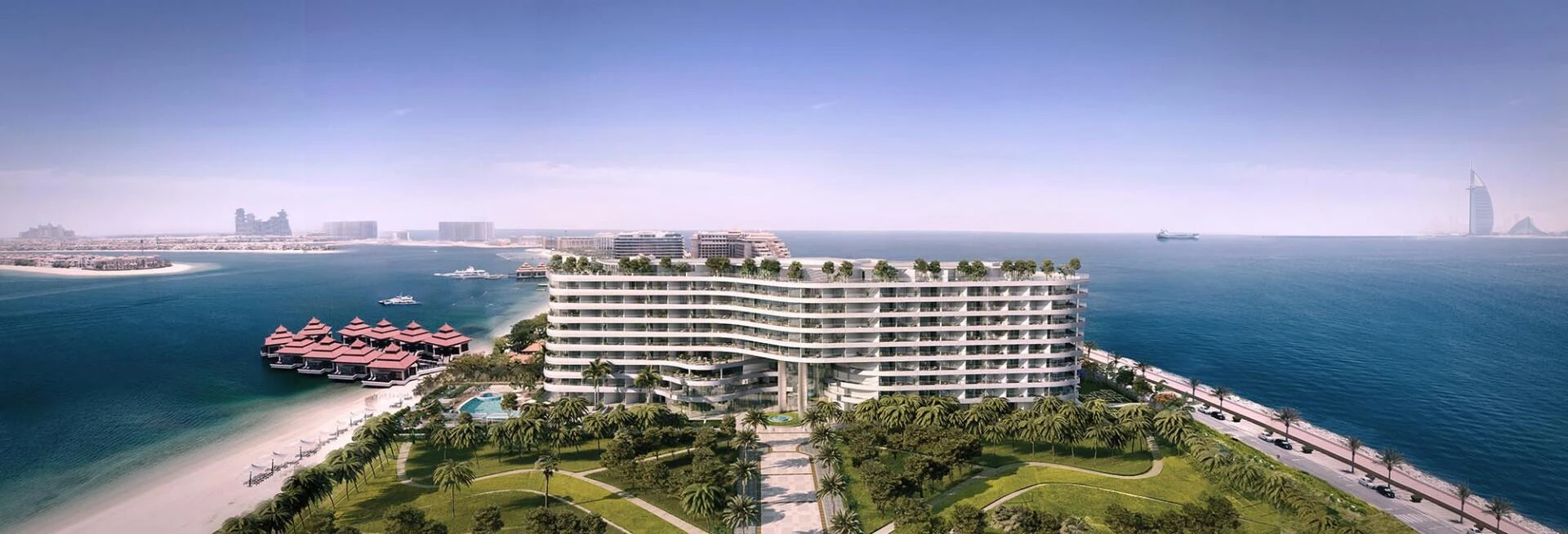 Azizi Mina to wyrafinowane miejsce mieszkalne usytuowane na światowej sławy Palm Jumeirah, starannie zaprojektowane, aby uchwycić istotę luksusowego życia nadmorskiego. Jego elegancka, inspirowana statkami architektura wyróżnia się płynnie zaprojektowanymi balkonami, gładką białą fasadą i oknami od podłogi do sufitu, które oferują oszałamiające panoramiczne widoki na Zatokę Arabską.