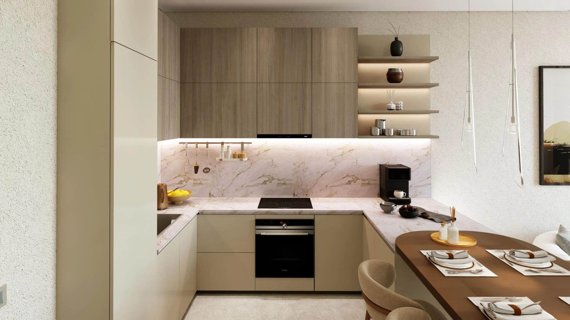 Każda rezydencja jest perfekcyjnie wykończona i wyróżnia się nowoczesnymi wnętrzami oraz najwyższą jakością wykonania. Eleganckie, nowoczesne kuchnie wyposażono w sprzęty Miele w apartamentach oraz luksusowe zestawy Gaggenau w penthouse’ach, gwarantując styl i funkcjonalność nawet najbardziej wymagającym właścicielom.