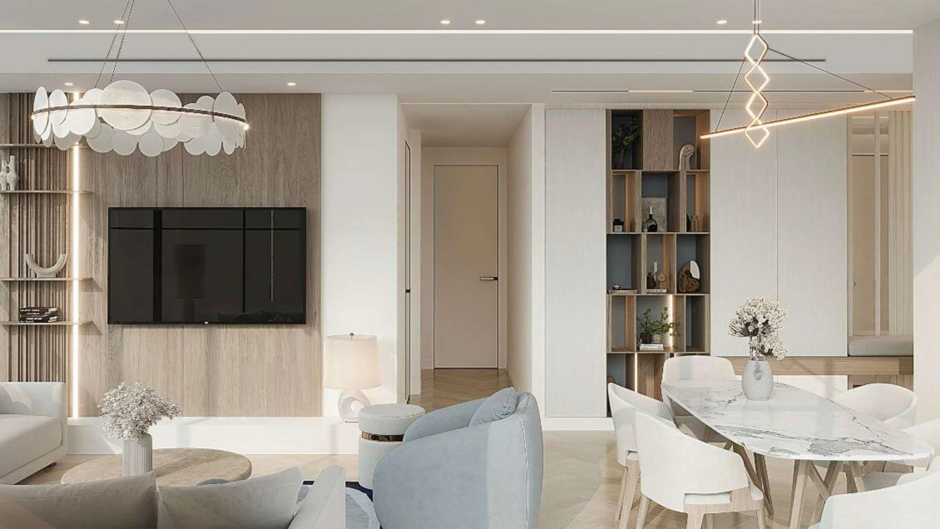 PG Maison proponuje różnorodne mieszkania – od nowoczesnych kawalerek po eleganckie apartamenty z jedną lub dwiema sypialniami, wszystkie skrupulatnie przemyślane, by maksymalnie wykorzystać naturalne światło i przestrzeń. Wyrafinowane wnętrza z wysokiej klasy wykończeniami, oknami od podłogi do sufitu i prywatnymi balkonami otulają Cię stylowym komfortem i panoramicznym widokiem na tętniącą życiem społeczność Al Furjan.