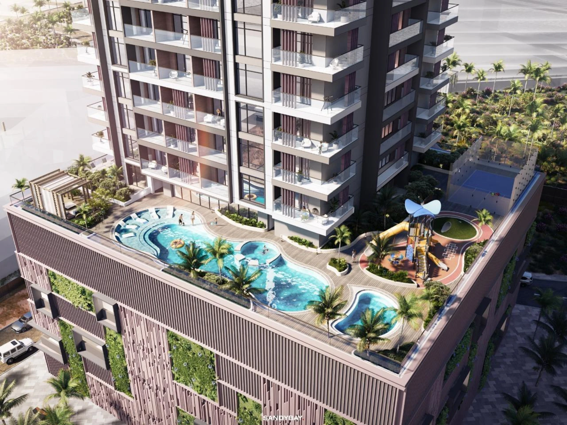Q Gardens Aliya od AYS Property Development redefiniuje luksusowe życie w poszukiwanej lokalizacji Jumeirah Village Circle w Dubaju. Ta architektonicznie imponująca rezydencja oferuje przestronne apartamenty skąpane w naturalnym świetle dzięki wysokim sufitom i panoramicznym oknom od podłogi do sufitu. Wyrafinowana elewacja doskonale oddaje tętniącą życiem atmosferę Dubaju, a światowej klasy udogodnienia—w tym lśniący basen, plac zabaw dla dzieci, kort do squasha oraz strefa BBQ—stawiają na pierwszym miejscu potrzeby każdego członka rodziny.
