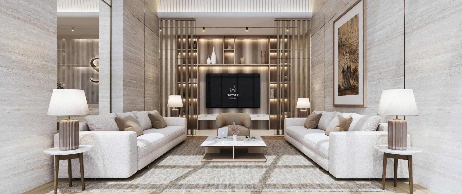 Every residence in Skyvue Stellar is thoughtfully designed for sophisticated living, featuring expansive floor-to-ceiling windows that flood each home with natural light and offer uninterrupted views of both the glittering Downtown Dubai skyline and the serene Ras Al Khor Wildlife Sanctuary. These sweeping panoramas form the heart of a truly elevated living experience.