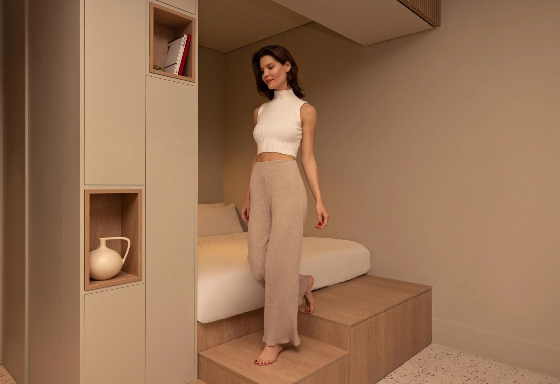 Wybierz spośród w pełni umeblowanych studiów i mieszkań z jedną sypialnią, każde wykonane zgodnie z najwyższymi standardami. Ciesz się włoskimi podłogami Terrazzo, sprzętem SMEG, systemami inteligentnego domu i prywatnymi balkonami — wszystko podkreślone na miarę stolarstwem i luksusowymi łazienkami od Carlo Frattini i Geberit. Każdy układ bez wysiłku dostosowuje się do życia w mieście, wspierając zarówno osobiste samopoczucie, jak i pracę zdalną.