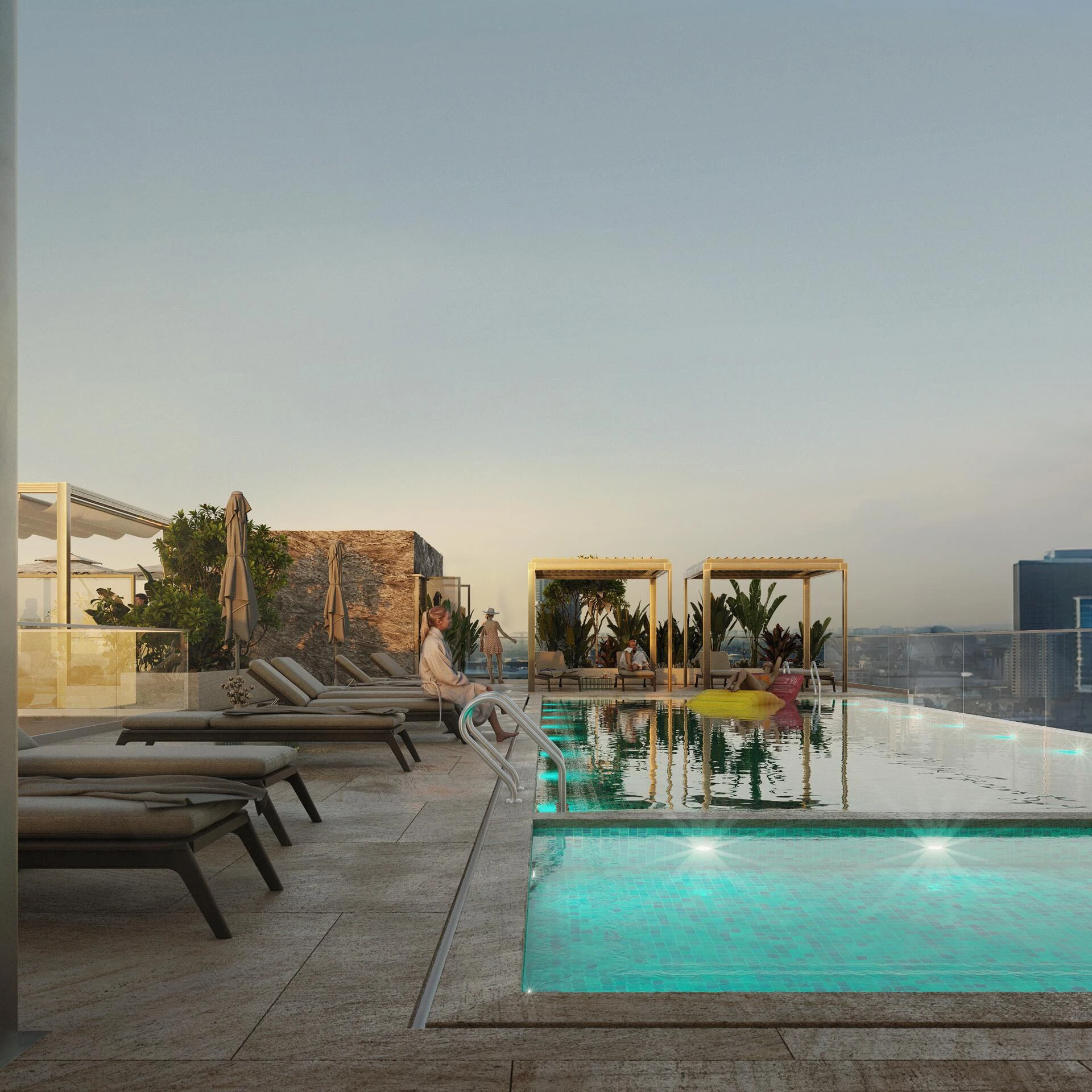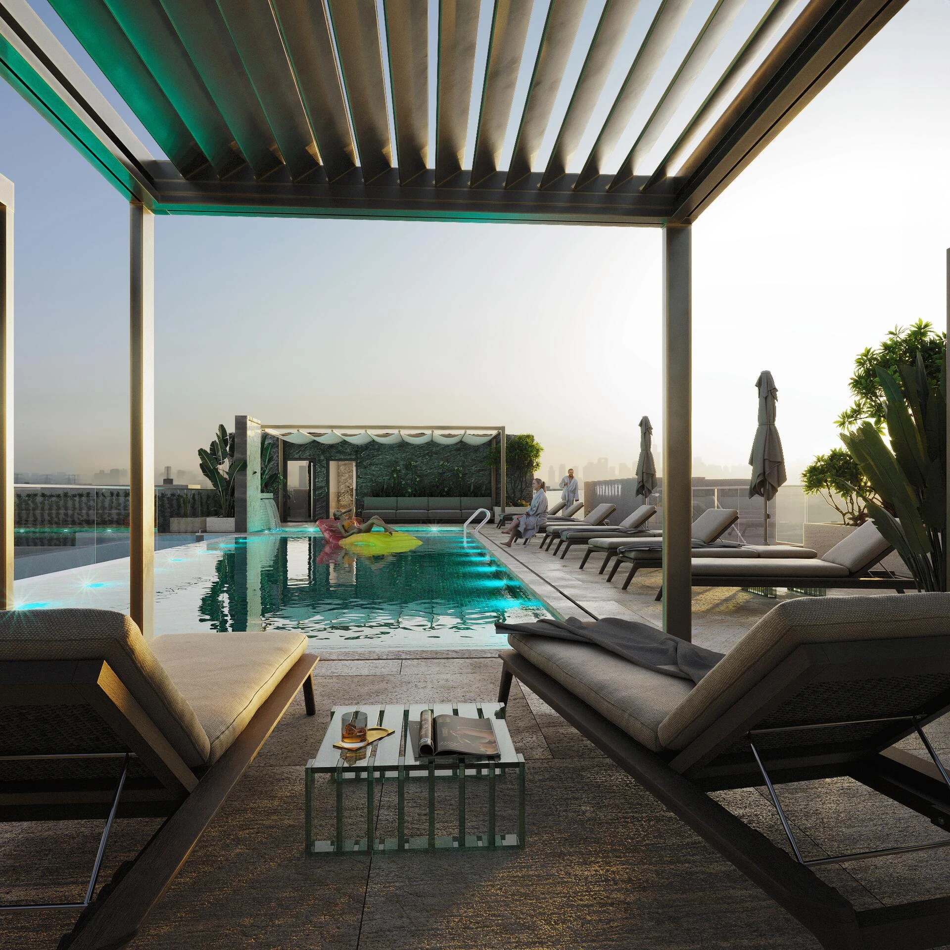 Vitality Residence wzbogaca codzienne życie szeroką gamą udogodnień premium: relaks przy basenie, energiczny trening na siłowni, inspirujące przestrzenie coworkingowe. Rodziny i osoby prywatne docenią plac zabaw dla dzieci, boiska sportowe, strefę grillową oraz regenerujące tereny do jogi na świeżym powietrzu i sauny. Wszystko to uzupełniają znane parki, sklepy i rozrywki w JVC, oferując codziennie nowe możliwości.