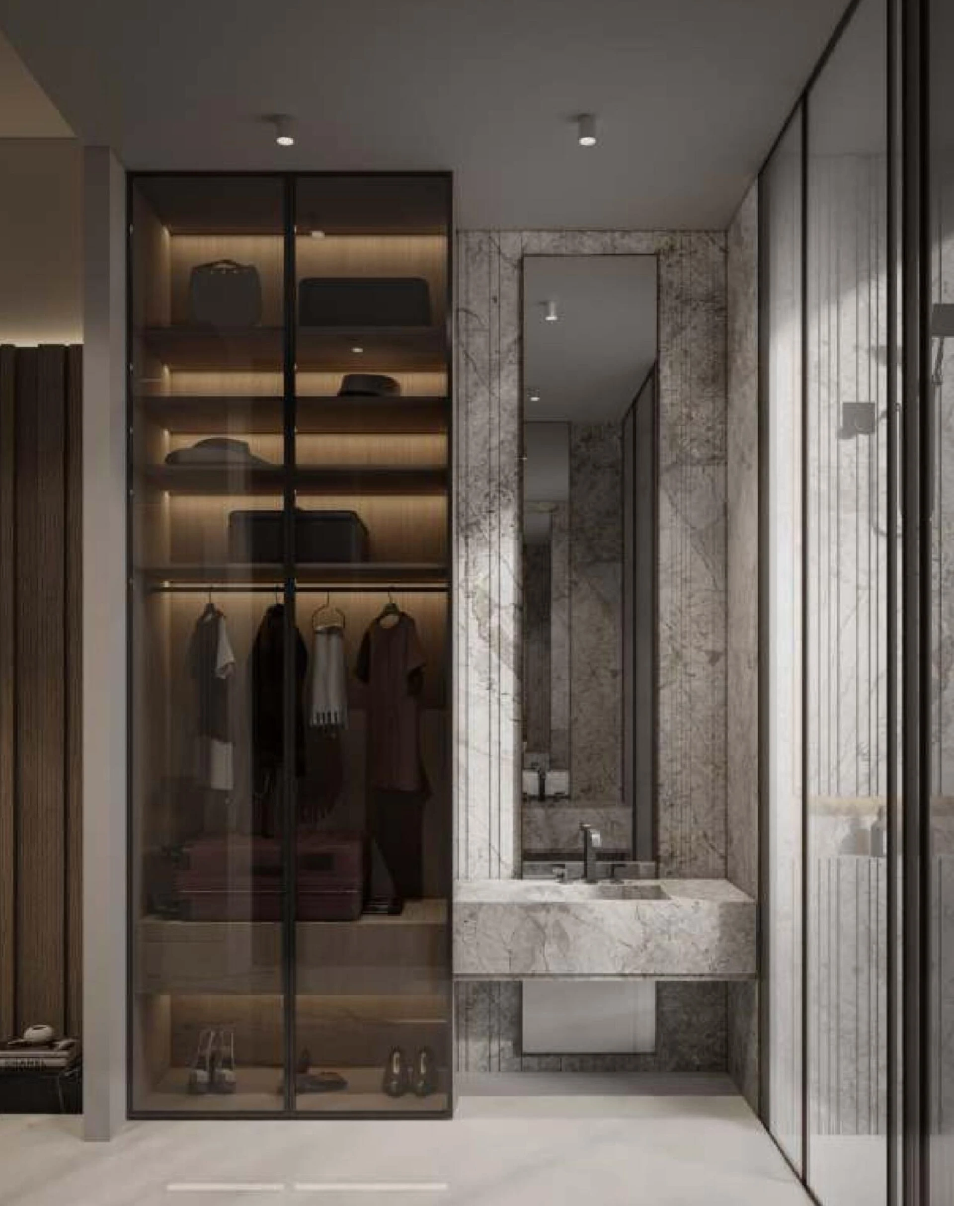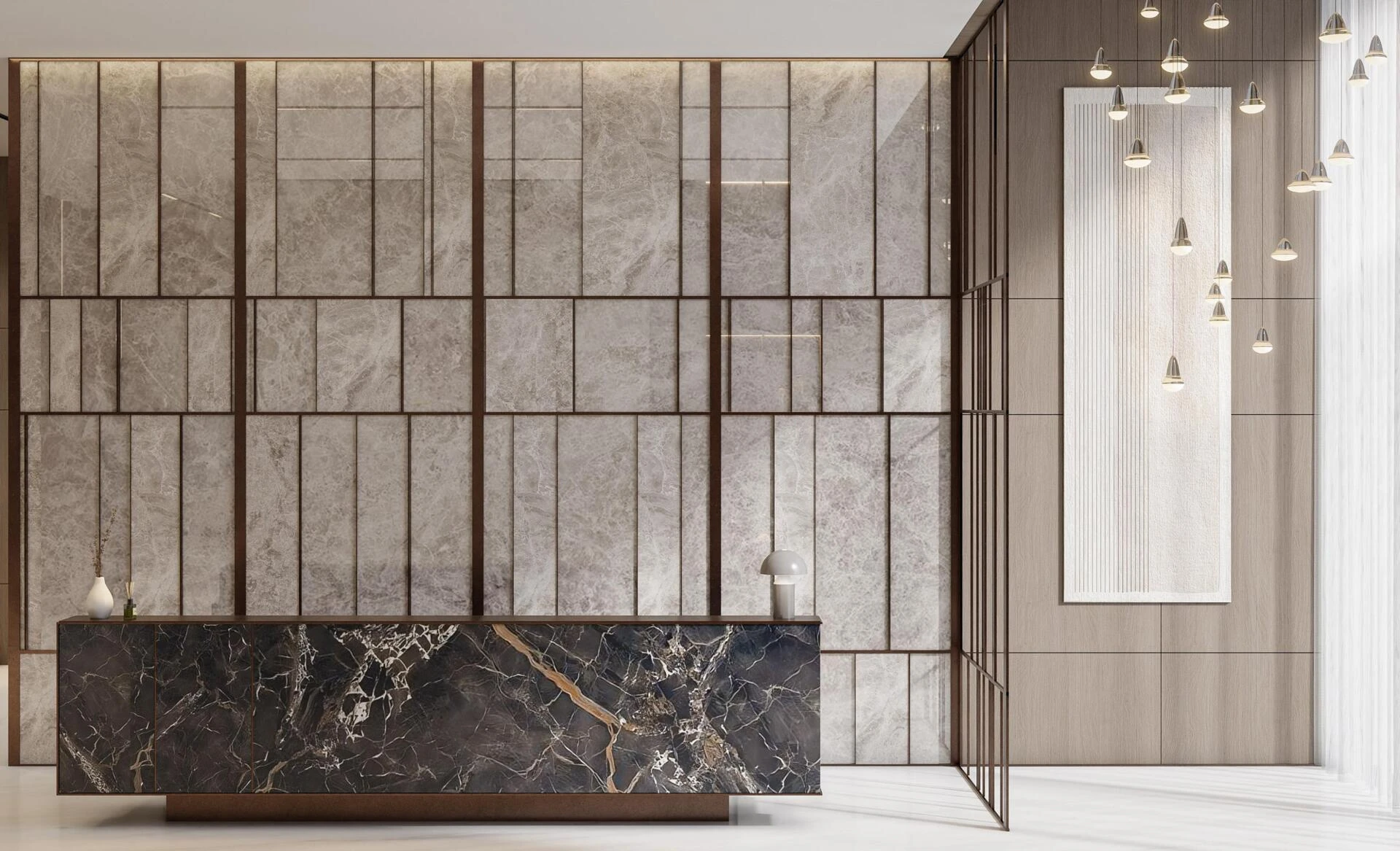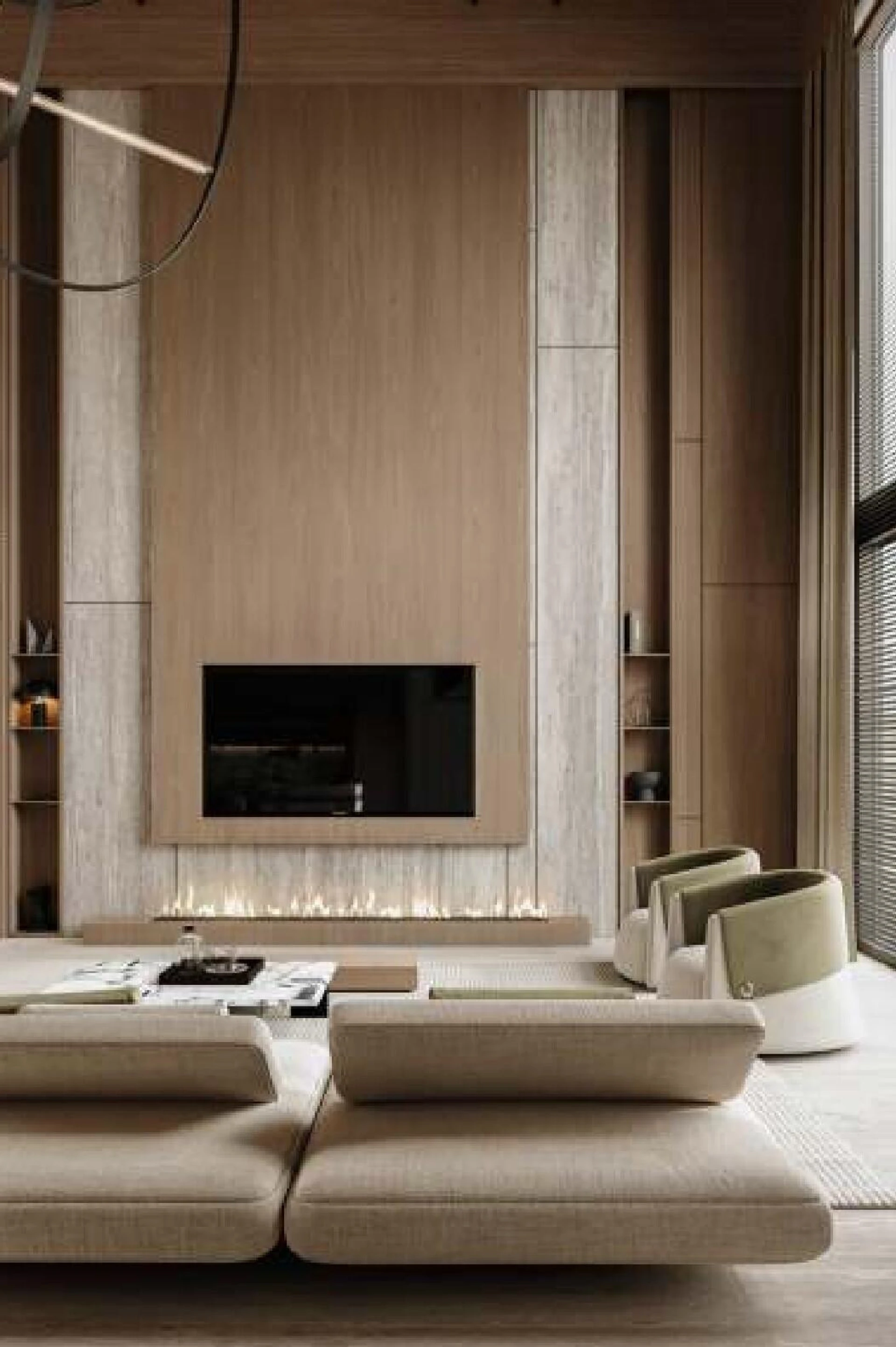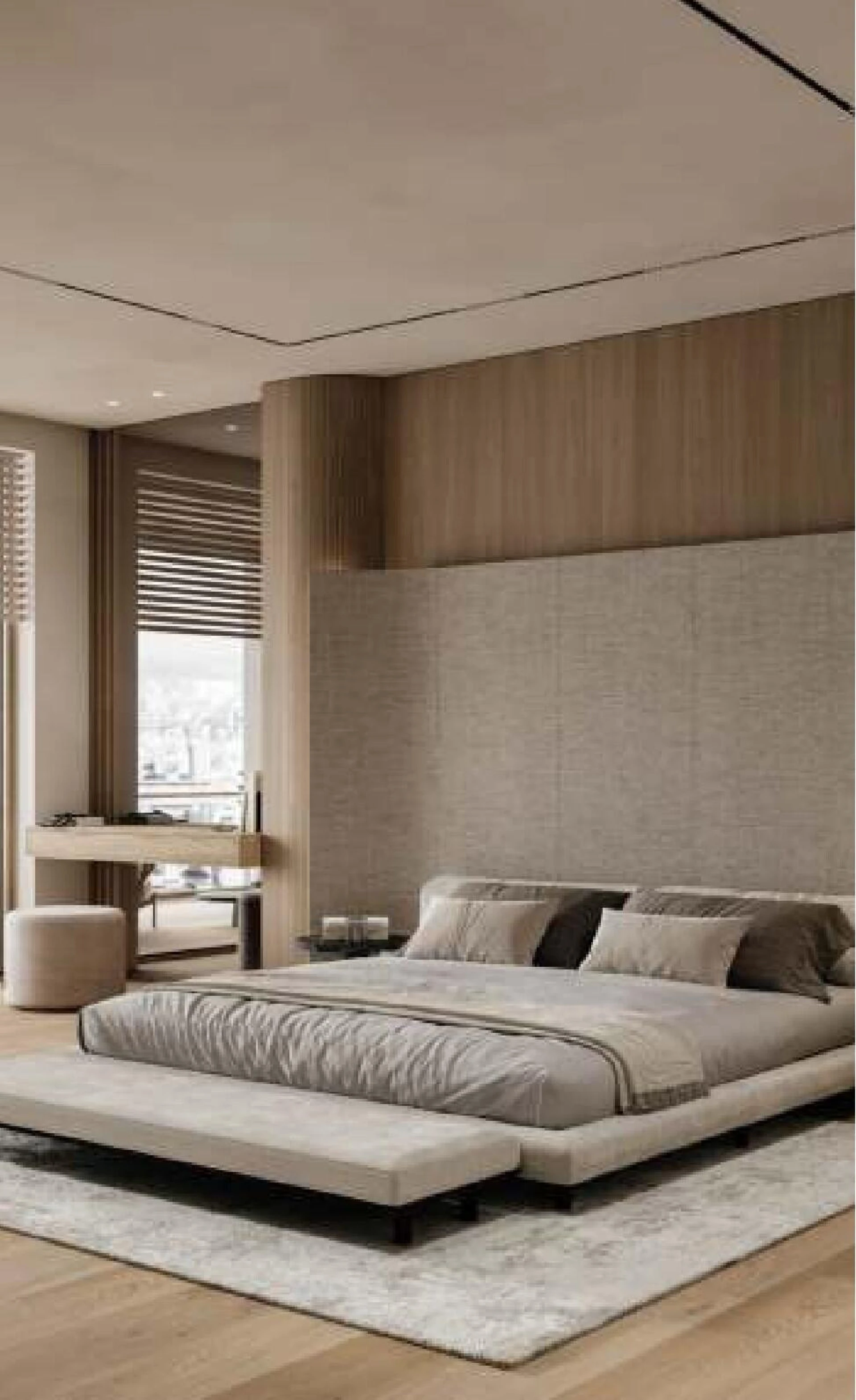 Wnętrza Vue emanują nowoczesnym minimalizmem, przesiąkniętym ciepłem i charakterem. Przestronne okna zalewają każde studio i trzypokojowe mieszkanie naturalnym światłem, podczas gdy uspokajająca paleta beżu, szarości i orzecha dostarcza poczucia wyrafinowanej spokojności. Każdy detal, od akcentów z trawertynu po wysokiej jakości wykończenia, został starannie dobrany, aby stworzyć atmosferę, w której komfort spotyka współczesny luksus.